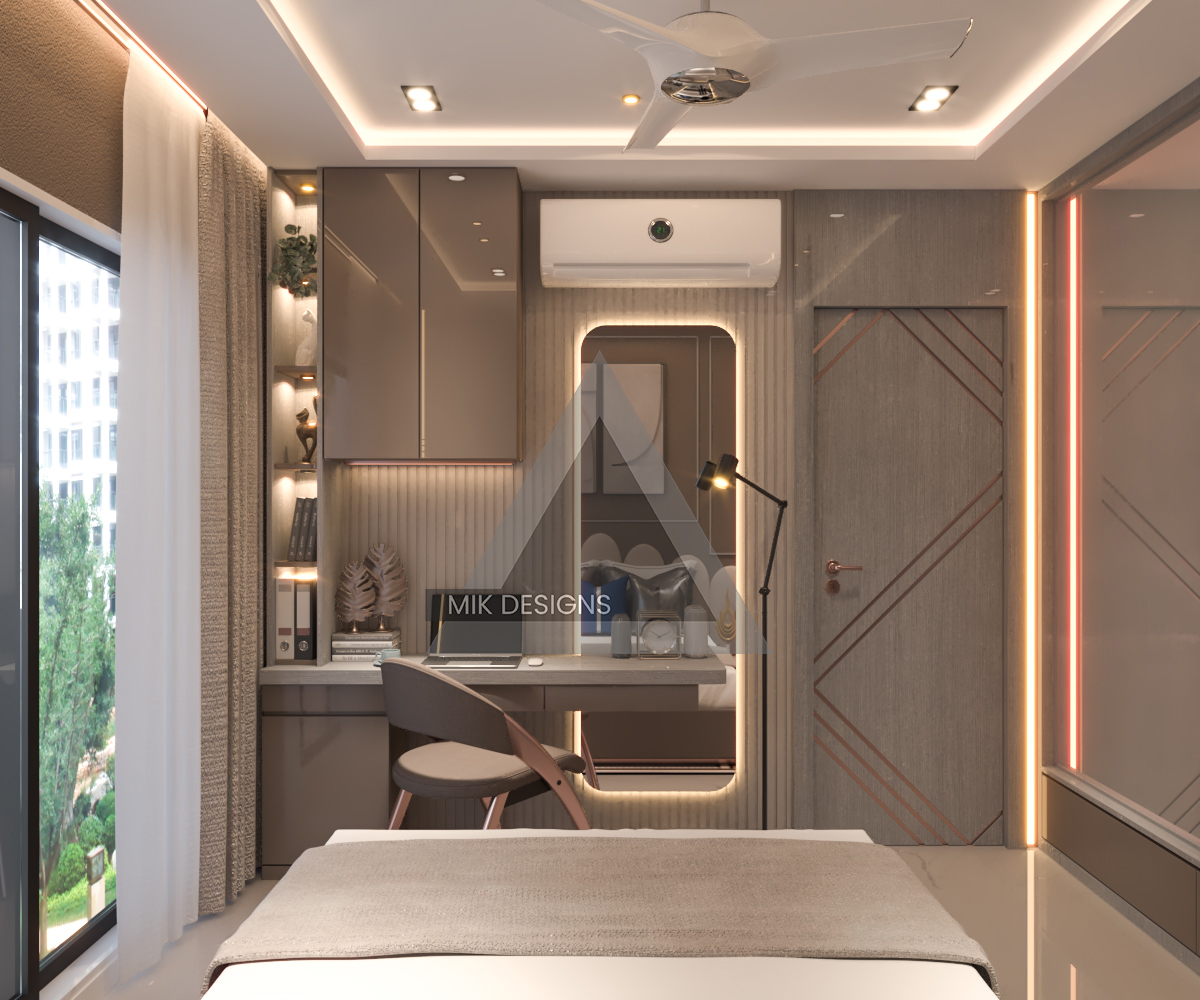 - Furniture: Functional and playful furniture including single beds, a study table, and storage units.