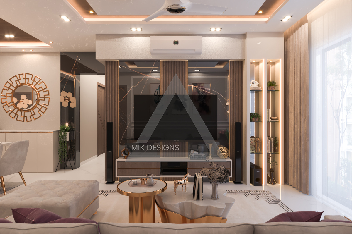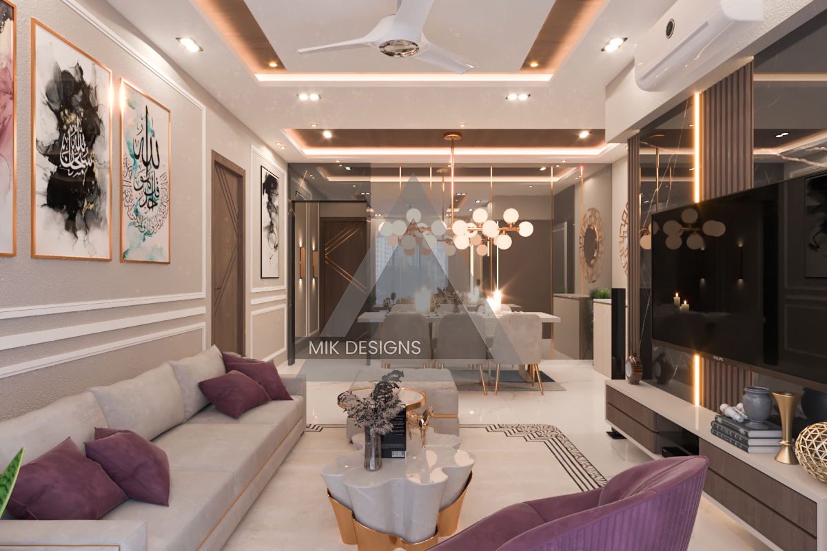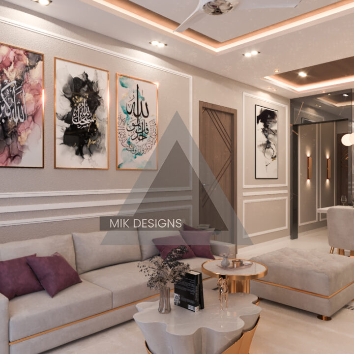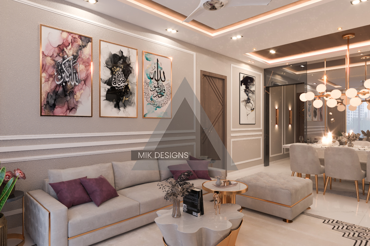 - Furniture: Plush, comfortable seating arrangements with modern sofas and armchairs in neutral tones. Accent pieces include stylish coffee tables, side tables, and elegant floor lamps.